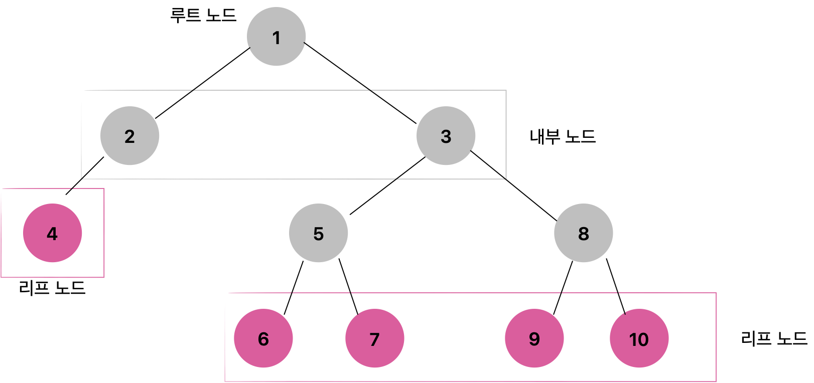 - 2개의 자식 노드는 왼쪽 자식과 오른쪽 자식노드로 나눌 수 있다.