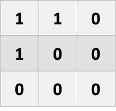 - 인접행렬: → 행렬의 요소가 1인지 0인지 여부만 조사하면 된다.
