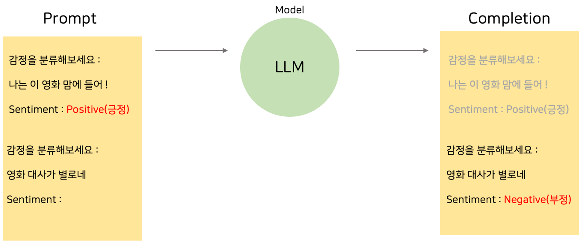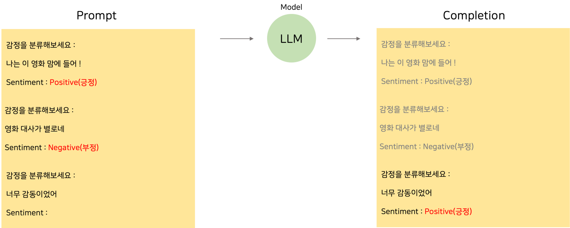 요즘 LLM은 Zero-shot에 대해서도 잘 동작하지만 모델이 작아질 경우 우리가 원하는 대답이 나오지 않을 수도 있습니다. 감정을 분류하라고 텍스트를 던졌는데 감정 분류는 커녕 전혀 상관없는 output을 출력할 수도 있습니다. 🥹