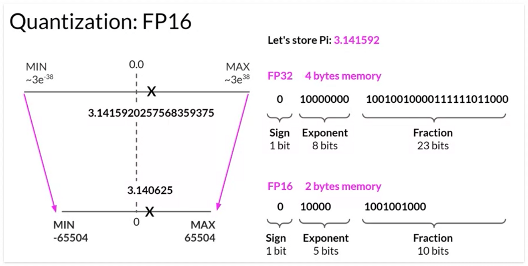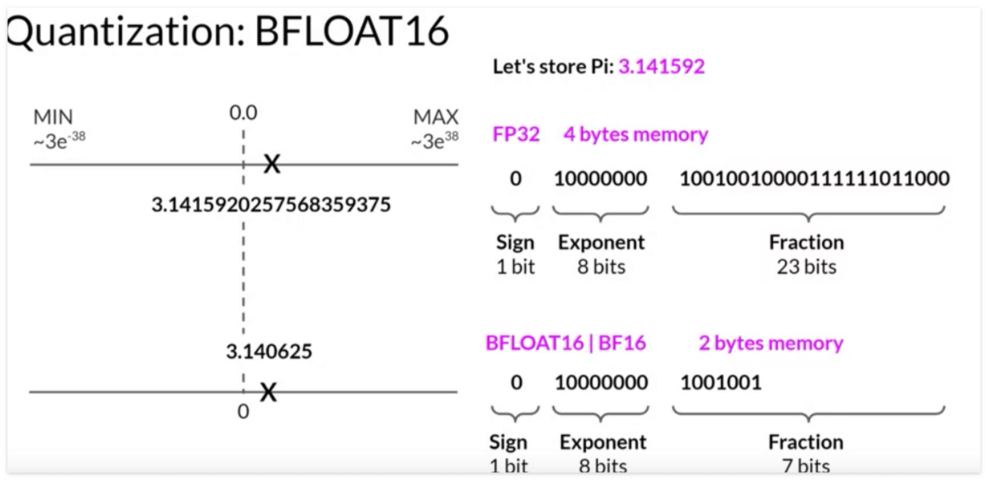 - 모델의 weight의 precision(정밀도)를 낮춤으로써 모델을 저장하고 학습하는데 필요한 메모리를 줄이는 것!