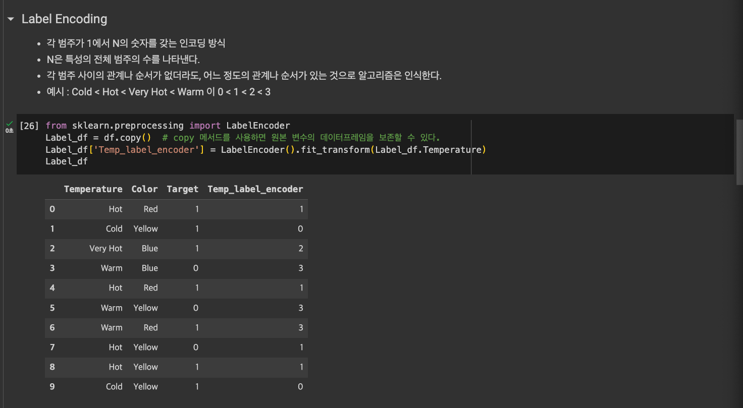 - 머신러닝 모델은 숫자 데이터만 이해할 수 있어서, 범주형 변수를 숫자로 변환해야 한다. 모델에게 맞게 언어를 해석하도록 하는 것이다.