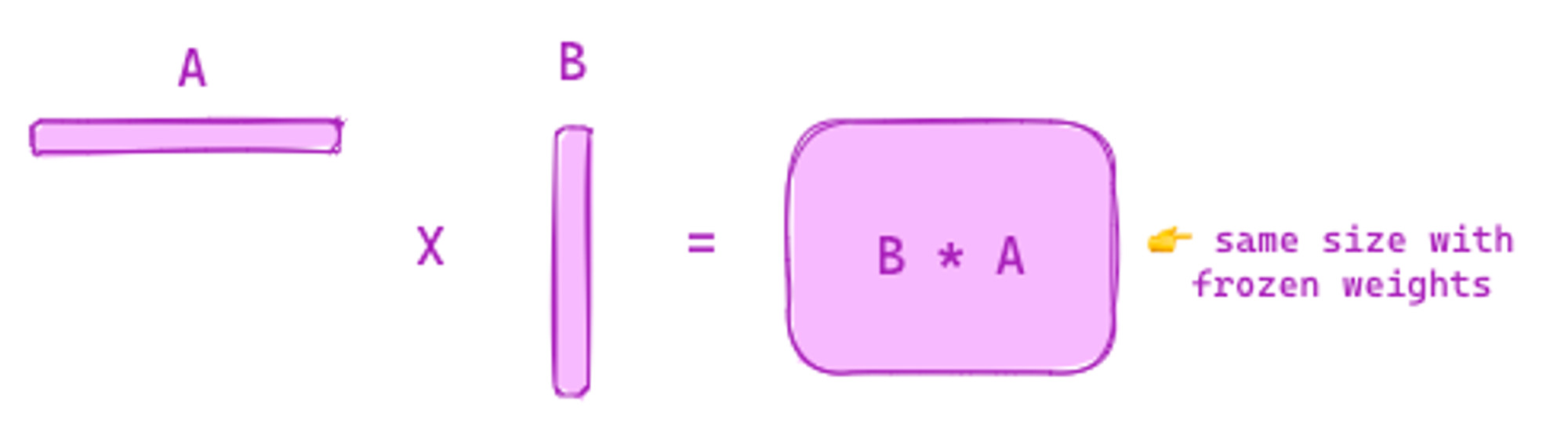 - ‘A Pair of Rank Decomposition Matrices’를 오리지널 weights에 주입합니다.