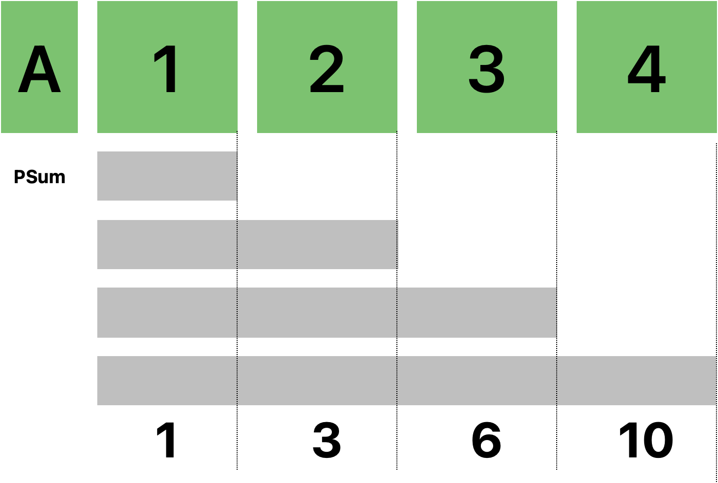 위 그림처럼 누적합이란 누적해서 더해진 값들의 배열을 의미한다.