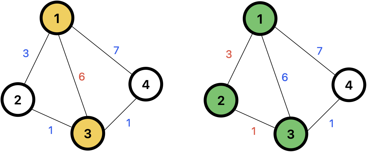 하지만 왼쪽과 달리 오른쪽 그림에서, 1부터 3까지의 최단 거리를 구할 때 2를 거친다면, 3+1=4로 훨씬 짧은 최단거리를 얻을 수 있다.