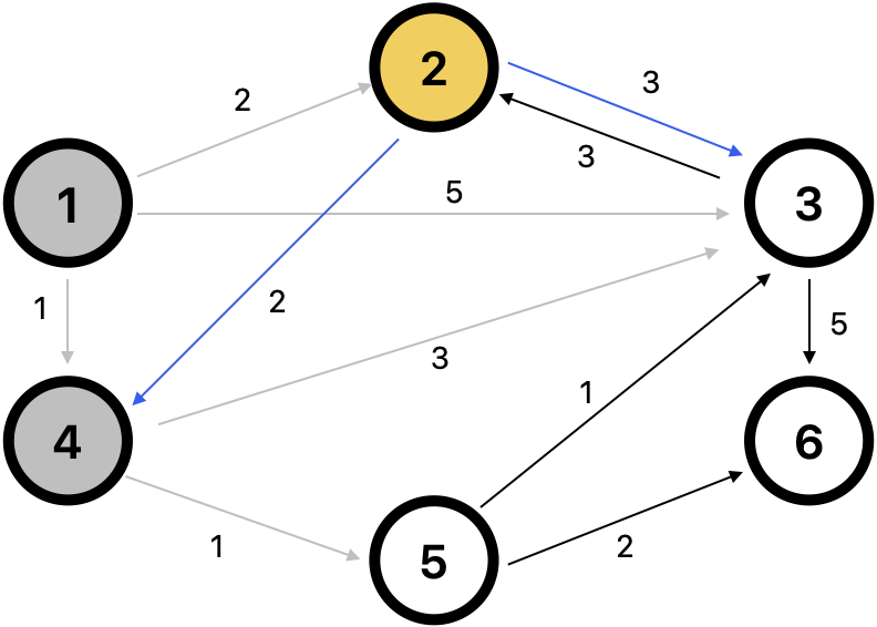 - 2를 거쳐 4로 가는 비용: 4